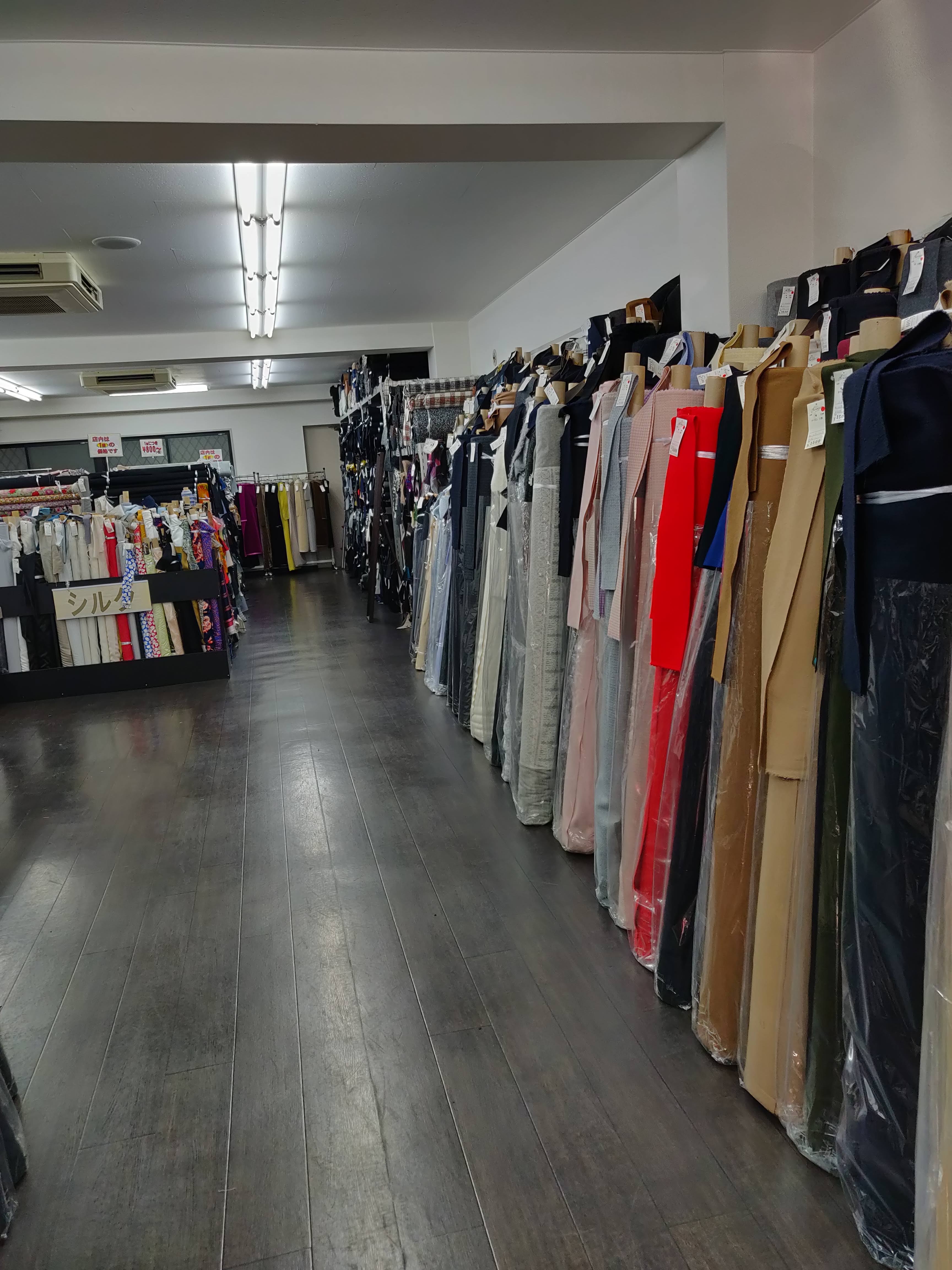 Nagato is, together with Tomato, the most famous store in Nippori. Personally I am not a huge fan, especially of no. 41, the main shop. I find it disorganized and it is hard to find natural fibers only (of course they do carry them, but I somehow never find what I am looking for…ever). The knit shop (no. 42) carries a lot of funny prints, and I found it useful when I was looking for swimsuit fabric. However, no. 43, the wool shop, is quite nice, and often has a scrap bin with a lot of nice wool suitings. Compared to Elegance, I think the quality is a bit lower, tho this store is open on Sunday too.