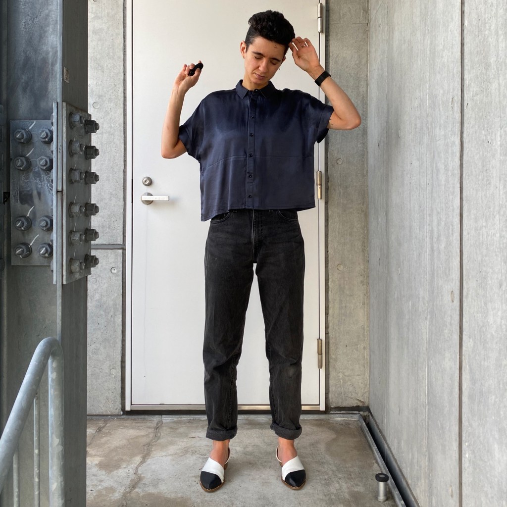 On Tuesday I wore an uncharacteristic femme outfit (nothing wrong with being femme. Femme is great. I’m just not very femme lol) with a vintage pair of Levi’s and Style Arc Blaire Shirt, with no overlay in silk, and on Wednesday I wore the same jeans with the Olya Shirt by Paper Theory in double gauze.
