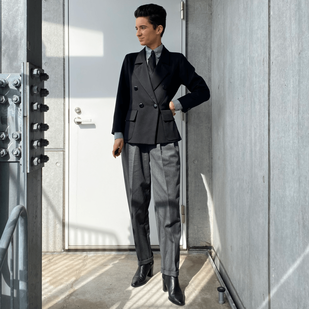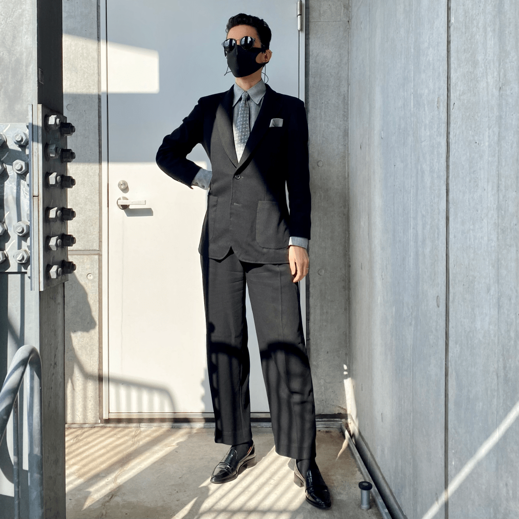 I really like the look below and especially this tie. It’s a vintage one from a Japanese store, and I have a particular penchant for vintage Japanese ties as they are shorter than contemporary ones. This is essential to me as I’m not massively tall (I’m 170 cm) and only wear high waisted trousers, making most ties comically long. I generally solve this issue by tucking the entire tie in my pants, which is…well, a look.