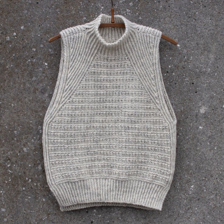 Personally, I’m going to wear this either by itself or as a layering piece underneath other clothes and not on top, so high armholes are a must. I’m leaning towards Vest no. 1 because it is a super simple design which fits very well with my general aesthetic and it’s made with 4.5 mm needles – I’ve been knitting with 3 mm needles for weeks and I can’t anymore!