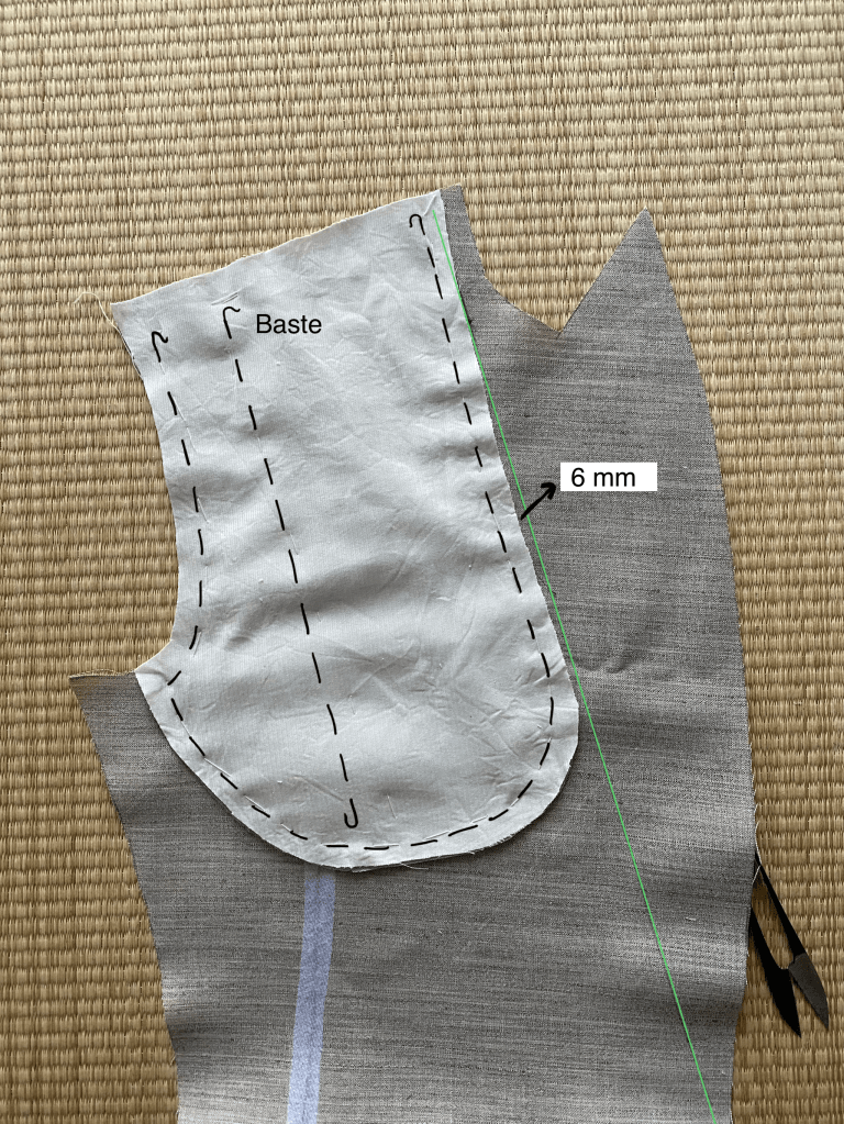 Use the plastron as a pattern piece to cut your flannel or domette with no dart and also making sure it’s about 1 cm larger than the horsehair.