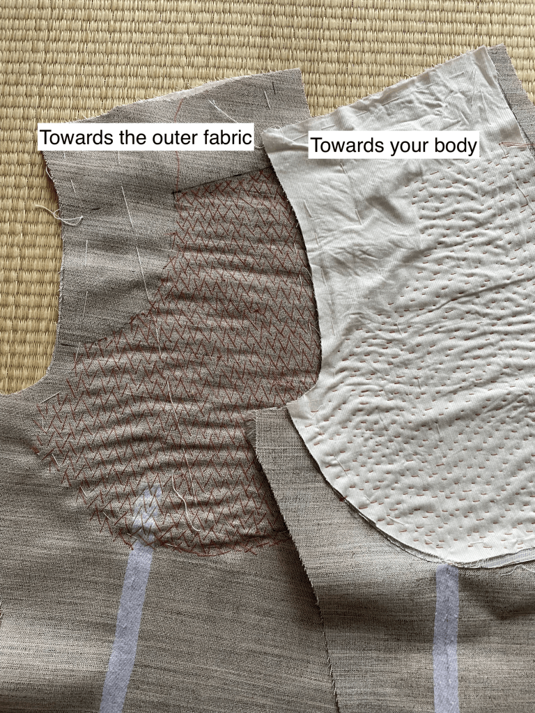 The important thing in padding is not the length of the stitch, but consistency. Ideally, the diagonal lines should be 1 cm but don’t sweat it and, for the love of Scott, don’t measure your stitches! Make what feels right, just be consistent about it (what in science we call the systematic error, haha!).