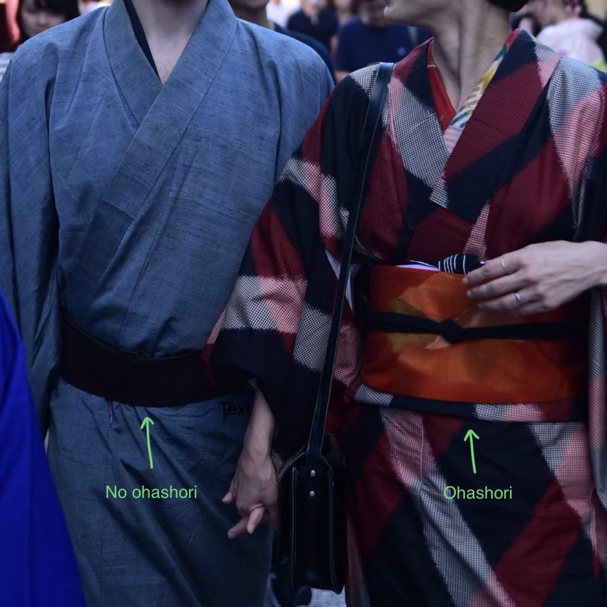 Before we move on, I want to finally clarify what this miyatsuguchi is. In the picture below, the right is of a kimono with miyatsuguchi, which you can tell because there’s a slit in the side called 身八つ口/miyatsuguchi. In kimono with no miyatsuguchi (on the left) there is no slit. That’s it. That’s the tweet. As a consequence of the miyatsuguchi, the 袖付け/sodetsuke, basically the length of sleeve which is attached to the body, also differs: it is much shorter in kimono with miyatsuguchi to allow for a tall obi worn high on the back, so please do consider which type of obi you will likely wear when constructing your kimono. Personally, I go for kimono with miyatsuguchi because that allows me maximal versatility as I either own very short kimono (so no ohashori) or can hide the ohashori in the low obi for the kimono with no miyatsuguchi look, but I also really like high and complex knots.